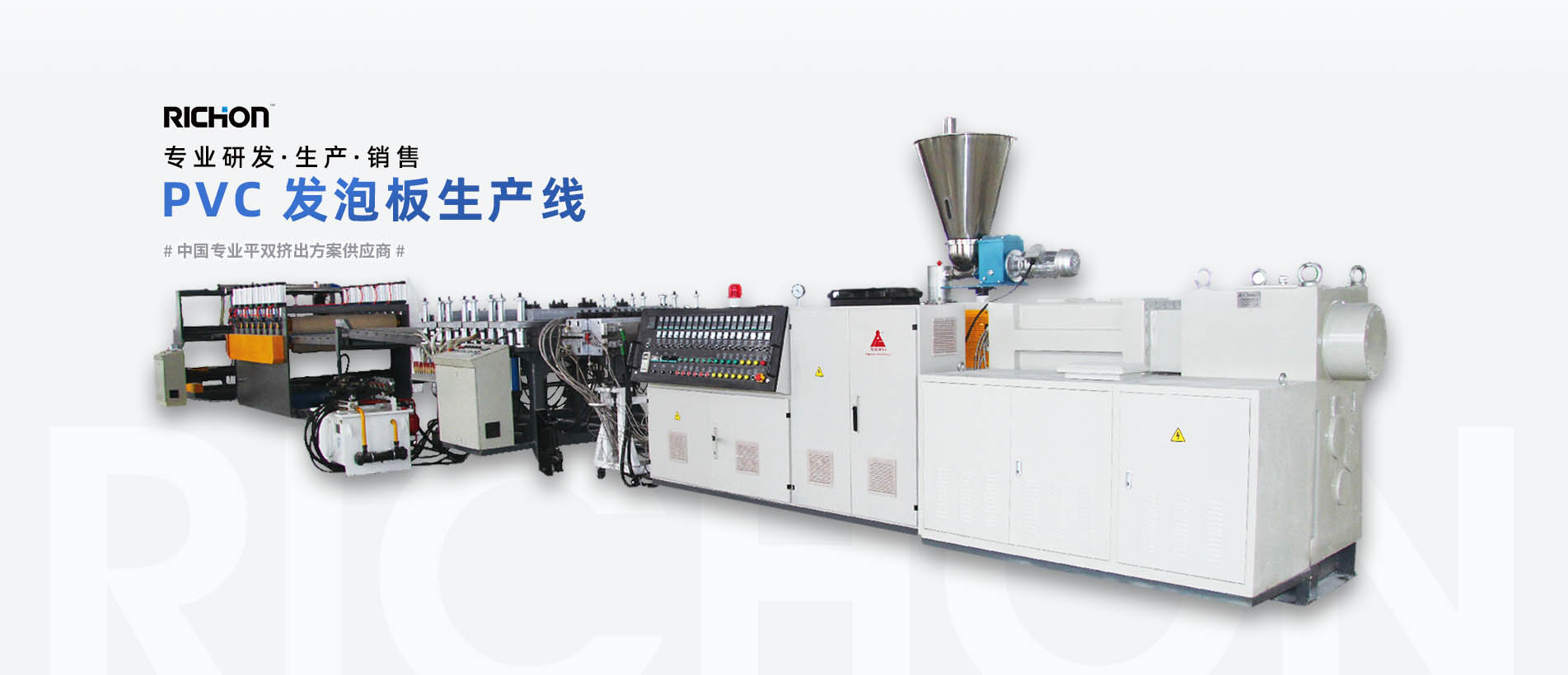 我們的產品包括SPC地板擠出生產線,PVC泡沫板擠出生產線,PVC管擠出生產線,PE管擠出生產線, PVC(WPC)型材擠出生產線,其中反向旋轉雙螺桿擠出機是中國的先驅。